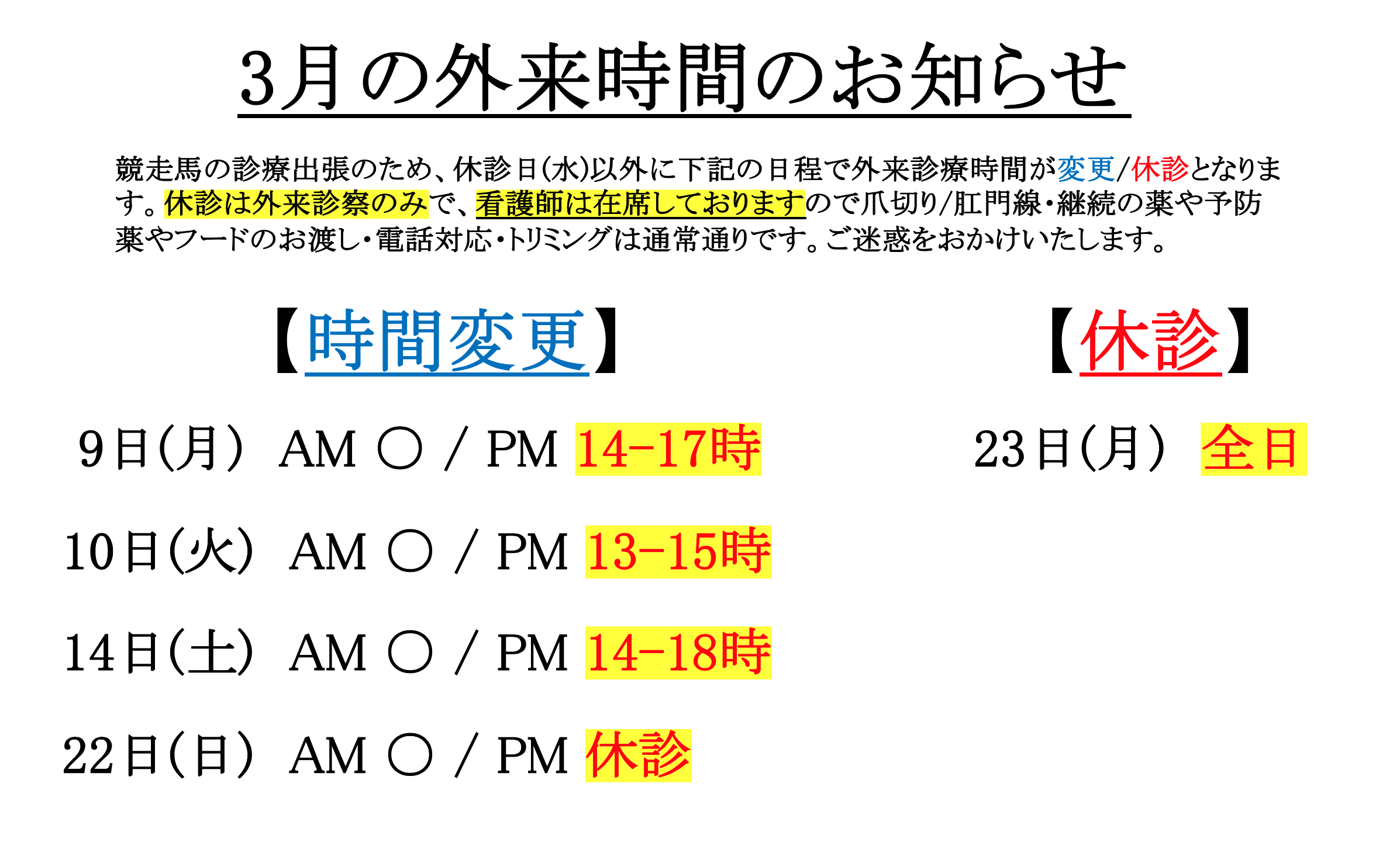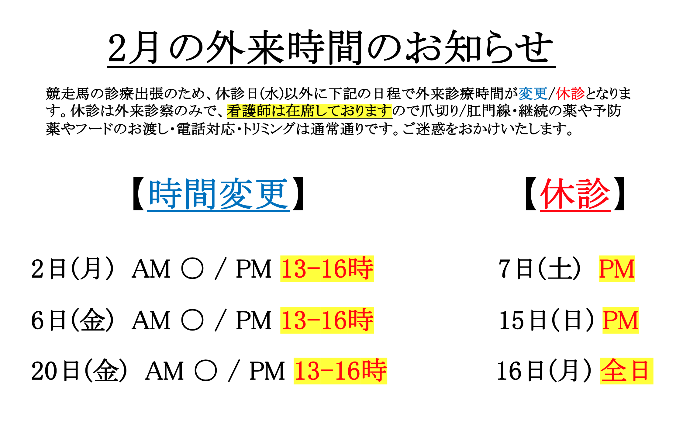 ※トリミングは、外来診療時間とは異なります。詳しくはお電話ください。