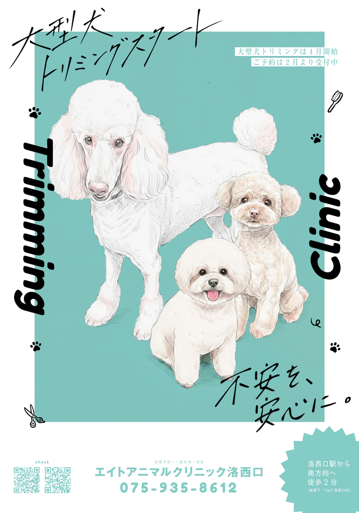ただいま、当月と翌月のご予約枠を承っております。トリミング時に狂犬病/混合ワクチンなどの予防注射や各種血液検査なども可能ですので、飼い主様もワンちゃんも来院回数を減らせます。詳しくはお電話にてお問い合わせください。